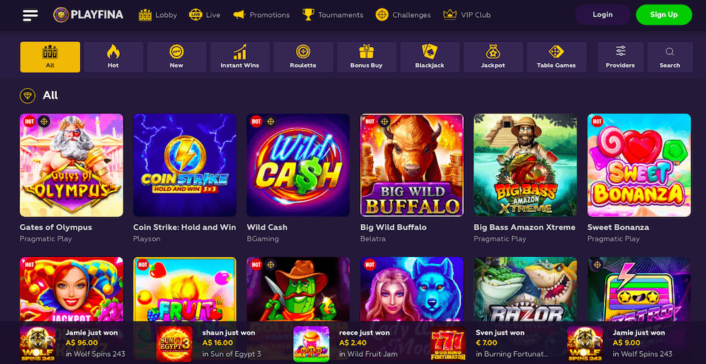 Playfina Online Casino offers a wide variety of exciting games that cater to every type of player. Whether you enjoy classic slots, table games like blackjack and roulette, or the thrill of live dealer games, Playfina has something for everyone.