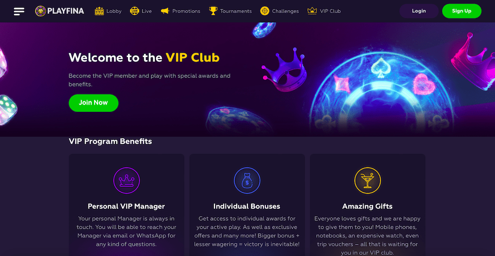 Our VIP program rewards loyal players with exclusive perks, such as personalized bonuses, faster withdrawals, and access to premium events. As you climb the VIP levels, the rewards become even more lucrative, making your time at Playfina even more enjoyable.